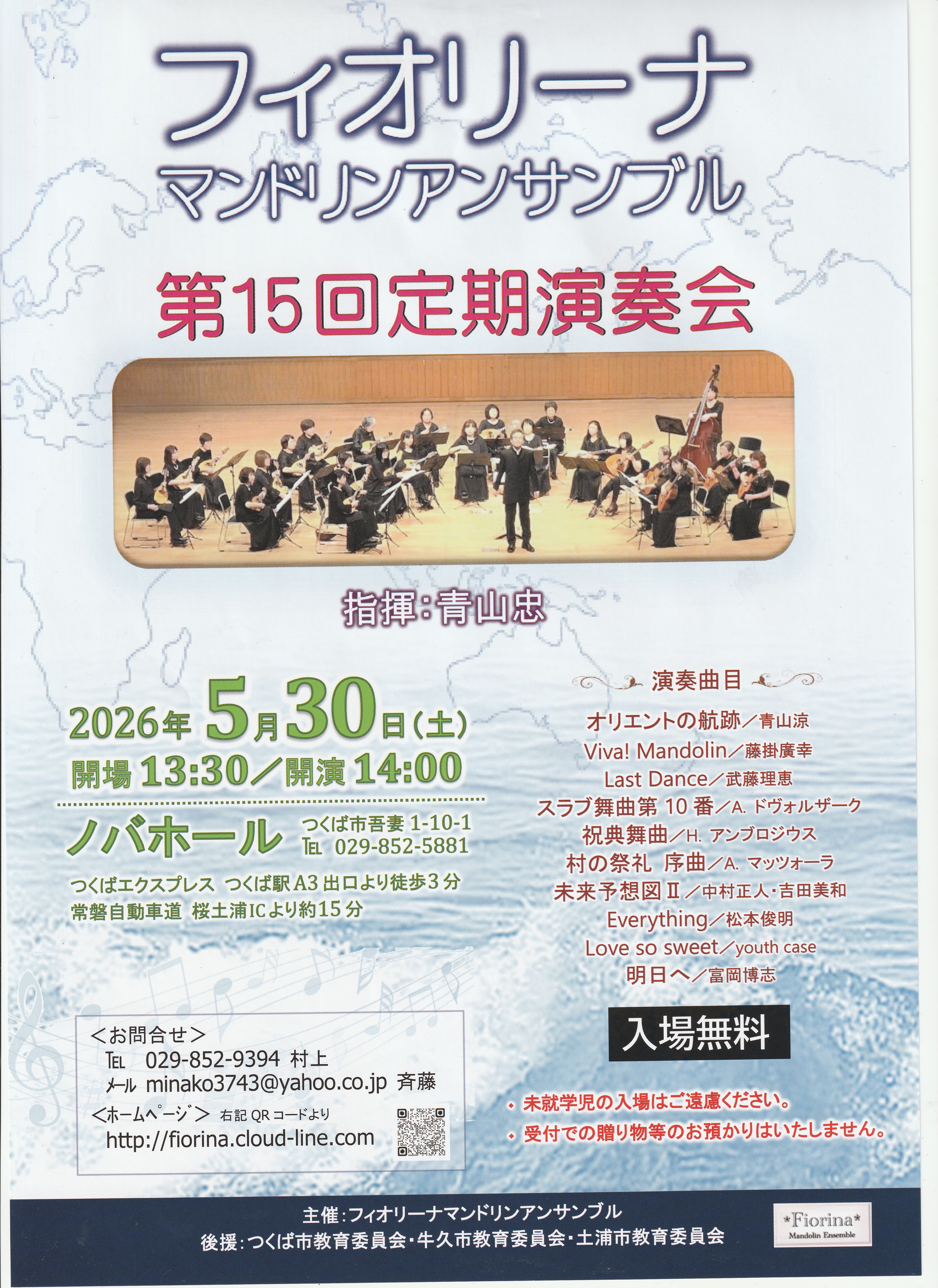 2026年5月30日(土)フィオリーナマンドリンアンサンブル第15回定期演奏会