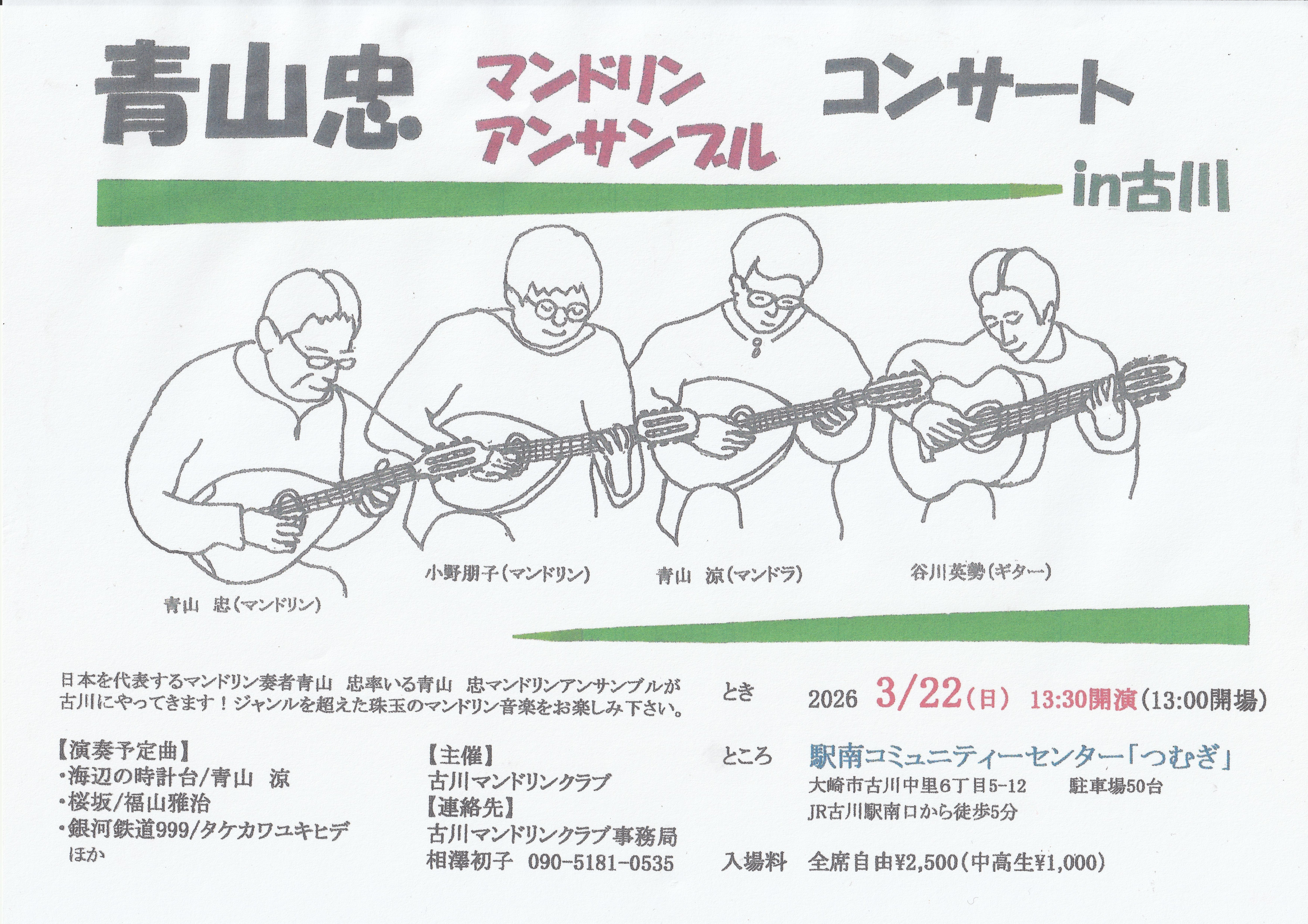2026年3月22日(日)青山忠マンドリンアンサンブルコンサート in 古川