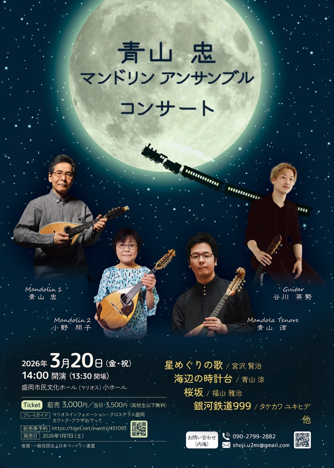 2026年3月20日(金・祝)青山忠マンドリンアンサンブルコンサート(盛岡)