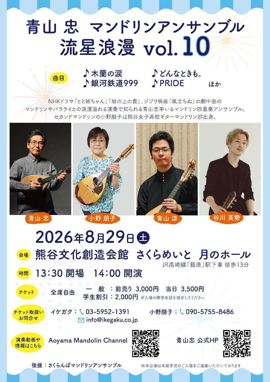 2026年8月29日(土)青山忠マンドリンアンサンブル流星浪漫 Vol.10